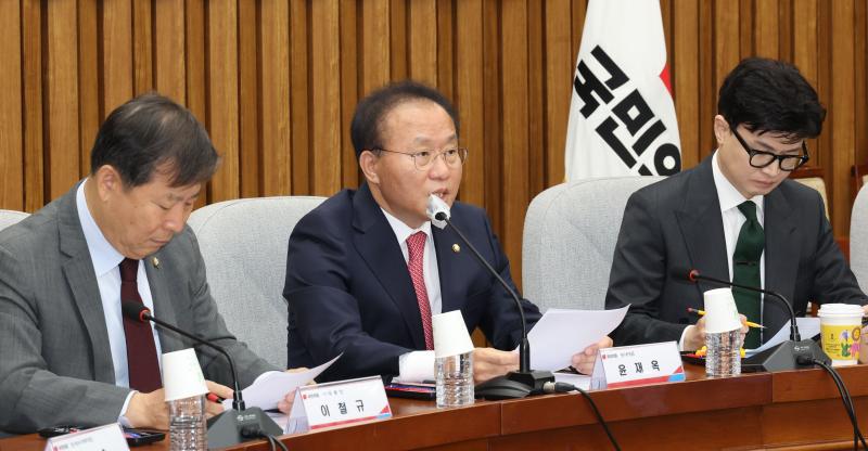 윤재옥 원내대표는 회의 모두발언에서 "민노총 건설노조가 서울 한복판에서 벌인 노숙 시위는 국민에 큰 충격을 줬다. 공공장소 무단 점거, 음주·흡연·쓰레기 투기에 노상 방뇨까지 벌어졌다"며 "2023년 서울이라곤 도저히 상상도 할 수 없는 불법 시위"라고 비판했다.